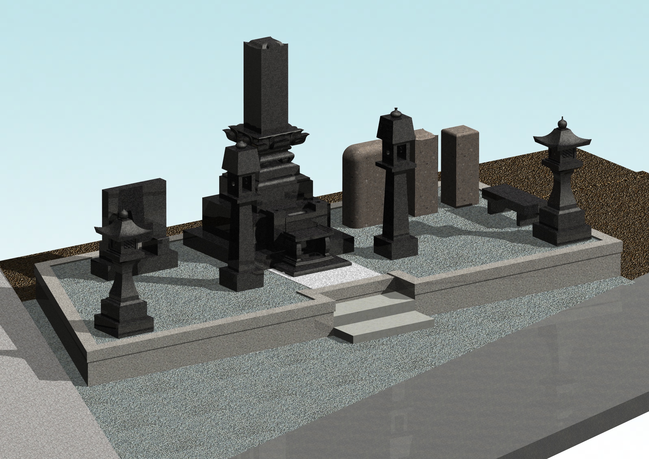 舞台の前のスペースをどのように扱うのかが問題でした。本体墓の位置を見て、階段を前方に突き出すのかどうかでしたが、最終的な仕上がりでは、スペースに余裕があった為、階段は内側に作られました。